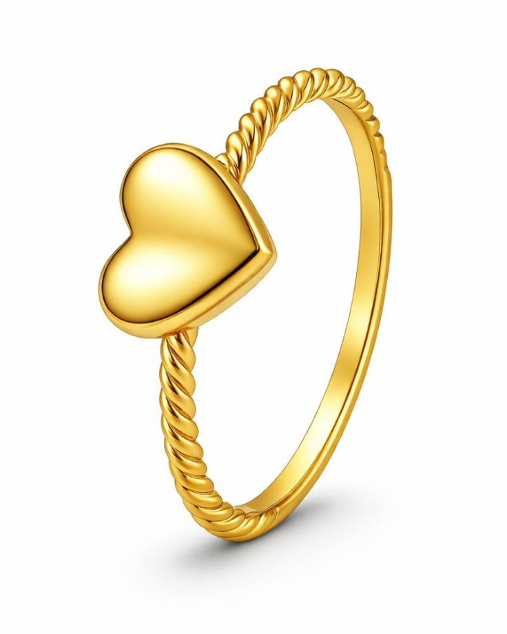 Anel Dourado Coração Coravelle - Semijoia banhada a ouro 24k, confeccionada em metal base, com design minimalista e acabamento polido.