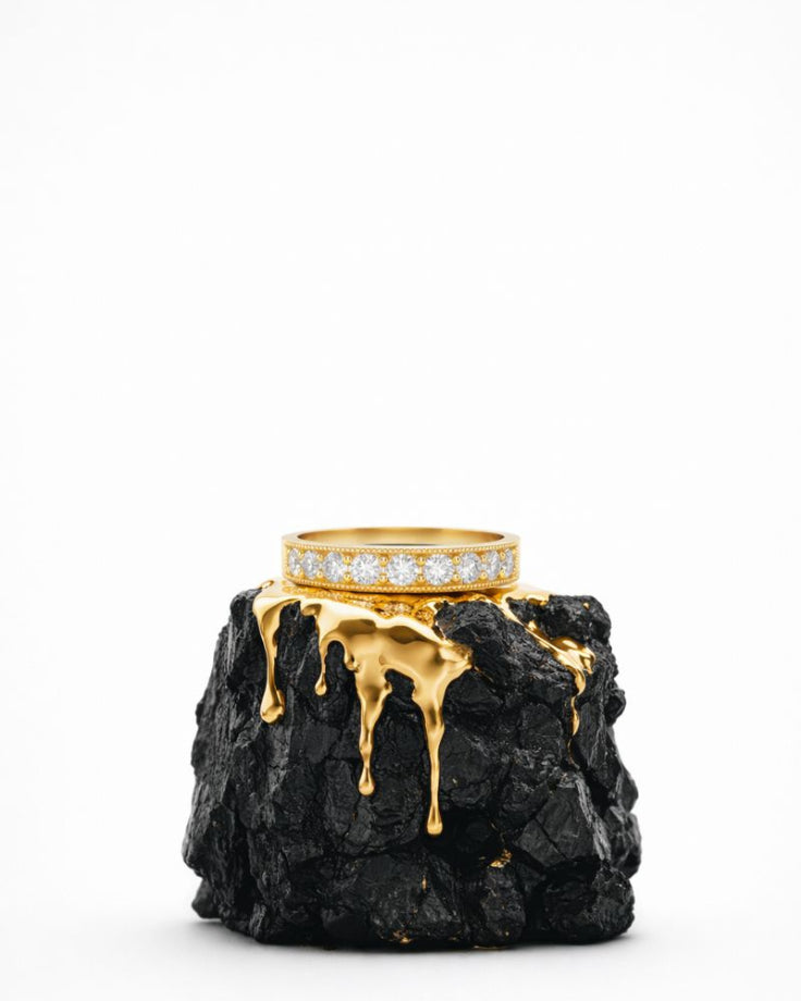 Seu contorno dourado evoca a constância dos reinos que não se firmaram pelo brilho, mas pela solidez silenciosa de seus ciclos.