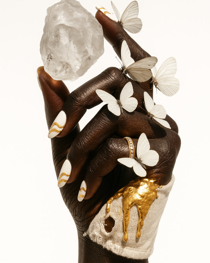 Acompanha gestos com a serenidade dos símbolos que carregam ecos de terras antigas, marcando o instante apenas pela firmeza de sua forma.