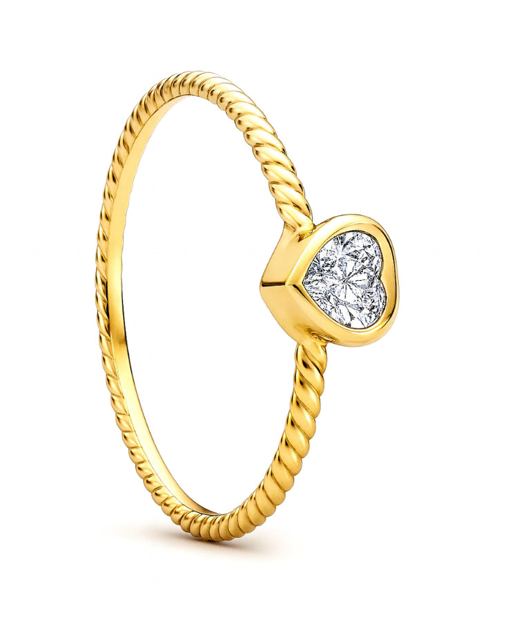 Anel Solitário – Coração da Lua Callisto - Semijoia banhada a ouro 24k, confeccionada em metal base e adornada com zircônia sintética. Entre Luas Que Sussurram Segredos