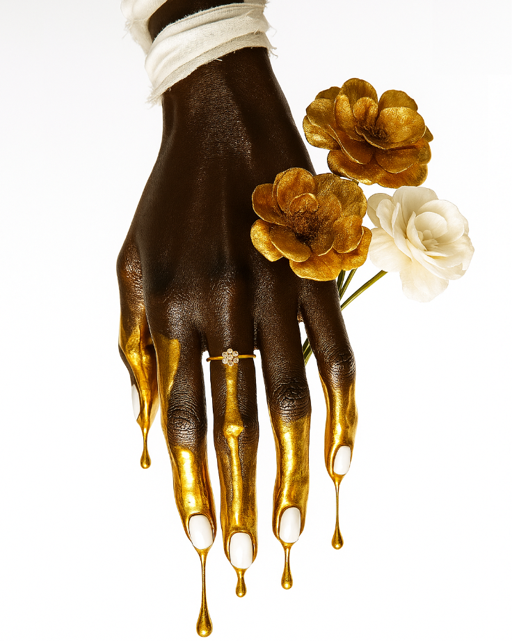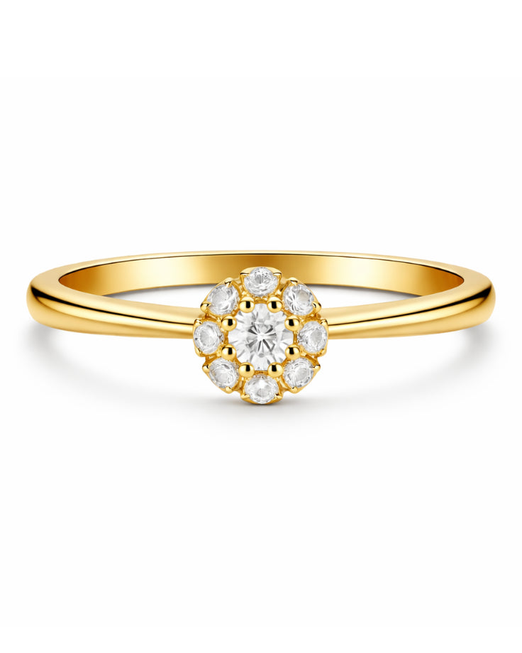 Anel Solitário Flor dos Campos de Aurelora - Semijoia banhada em ouro 24k, confeccionada em base de metal e adornada com zircônia sintética.