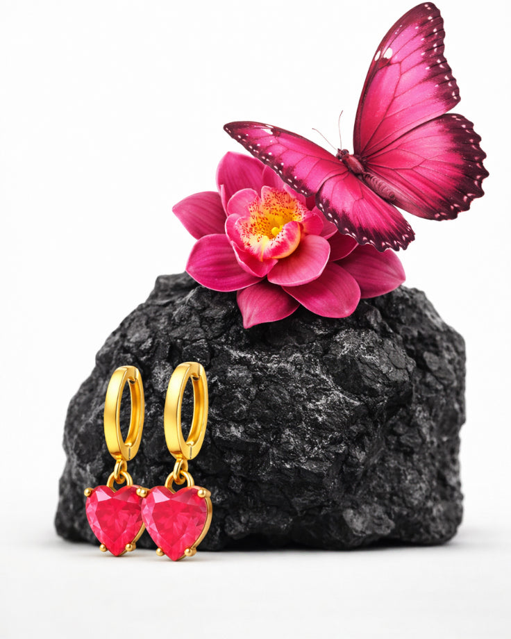 Brincos Coração Rosa da Ilha Rosivelle -Entre Jardins Oceânicos e Luzes que Desabrocham