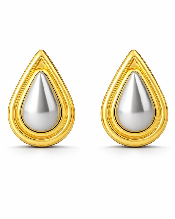 Produto classificado como semijoia. Brinco feminino modelo Gotas do Nilo, confeccionado em metal base com banho de ouro 24k aplicado como acabamento superficial. Peça de uso ornamental, sem valor intrínseco de metal precioso. Não se trata de joia em ouro maciço.