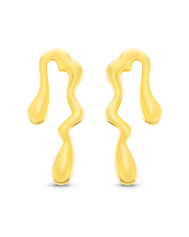 Produto classificado como semijoia. Brinco feminino modelo Raiz Dourada da Árvore Aurea, confeccionado em metal base com banho de ouro 24k aplicado como acabamento superficial. Peça de uso ornamental, sem valor intrínseco de metal precioso. Não se trata de joia em ouro maciço.