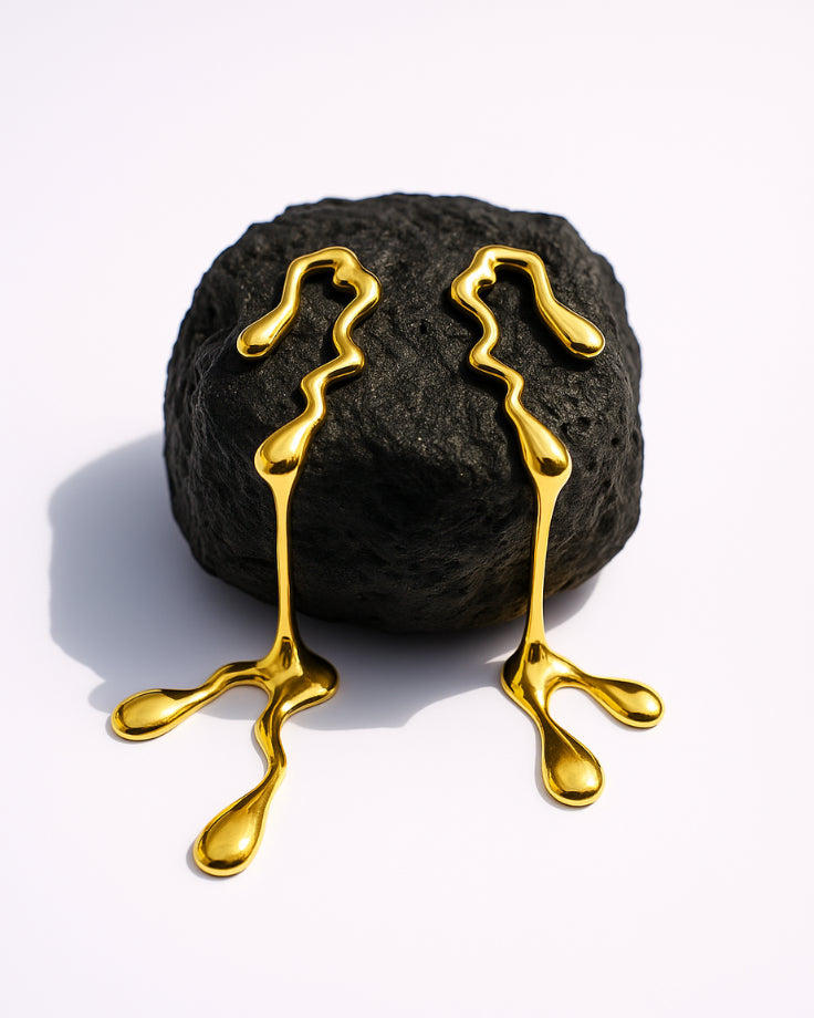O dourado reflete a luz discretamente, criando pequenos lampejos que se movem com suavidade junto aos gestos de quem os usa.
