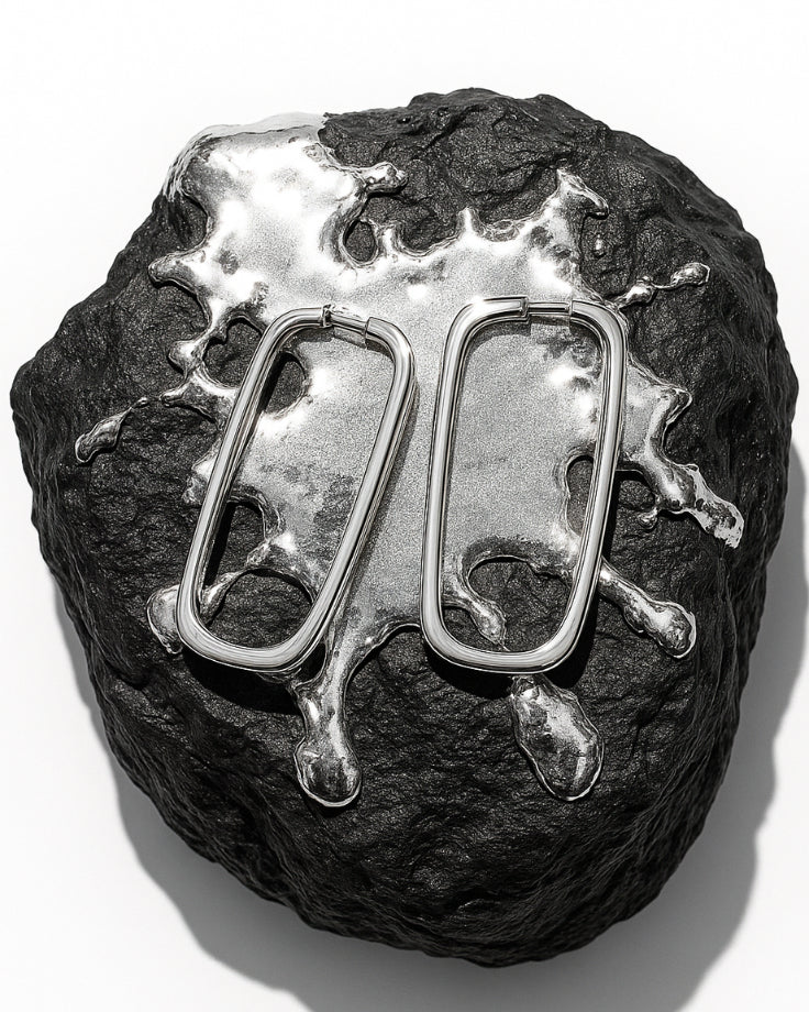 Os Brincos Retângulos Prateados de Zamora preservam esse instante: a geometria da memória transformada em delicadeza que acompanha cada gesto.