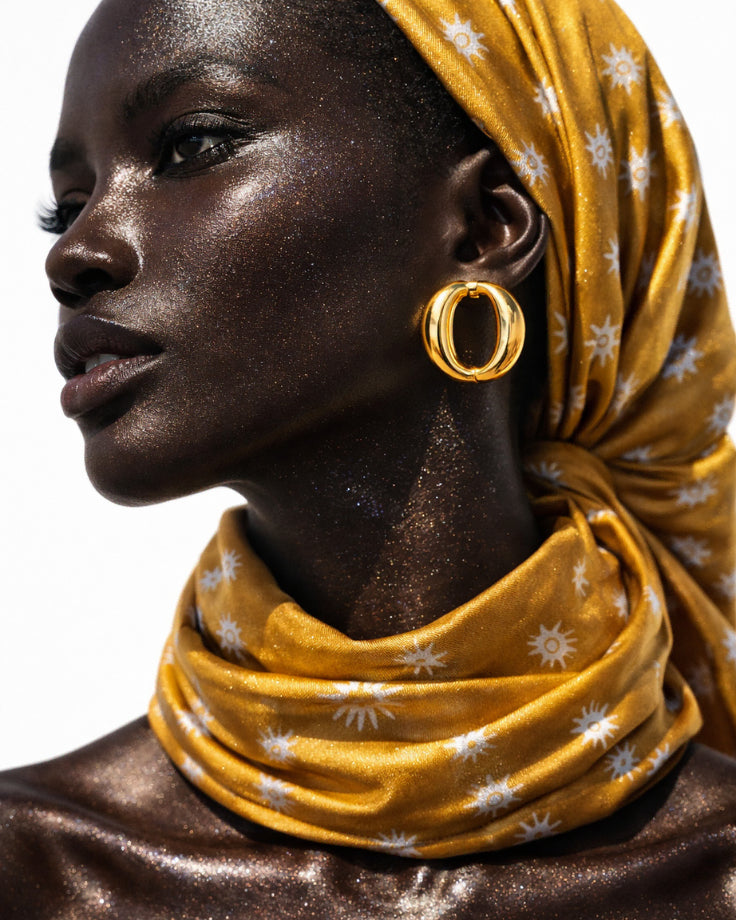 Os Brincos Sol da Babilônia preservam esse instante: a luz intensa e cálida transformada em detalhes delicados que acompanham cada gesto.