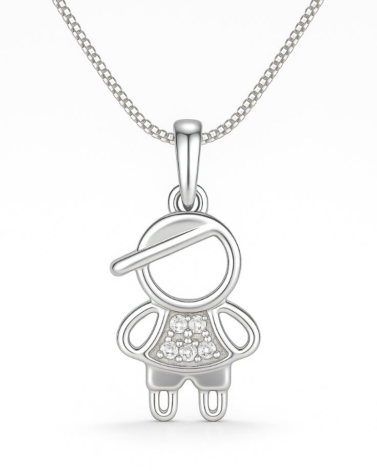 Colar Menino Solitário da Lua de Prata