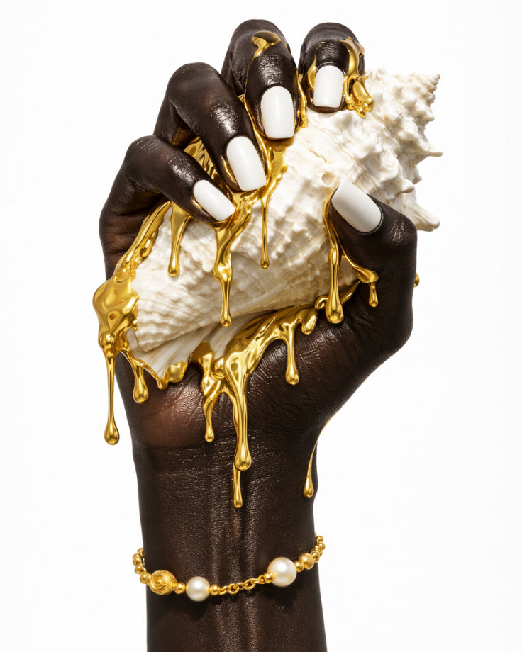 O design circular reflete o movimento contínuo da luz — fluido, equilibrado, essencial. O dourado reluz como metal aquecido pelo sol, evocando recomeço, força e permanência. Nada se quebra, nada se perde — tudo retorna.