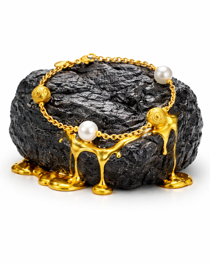 A pulseira acompanha o pulso com luminosidade serena, revelando-se no instante certo. Um brilho que não domina, apenas harmonizado.